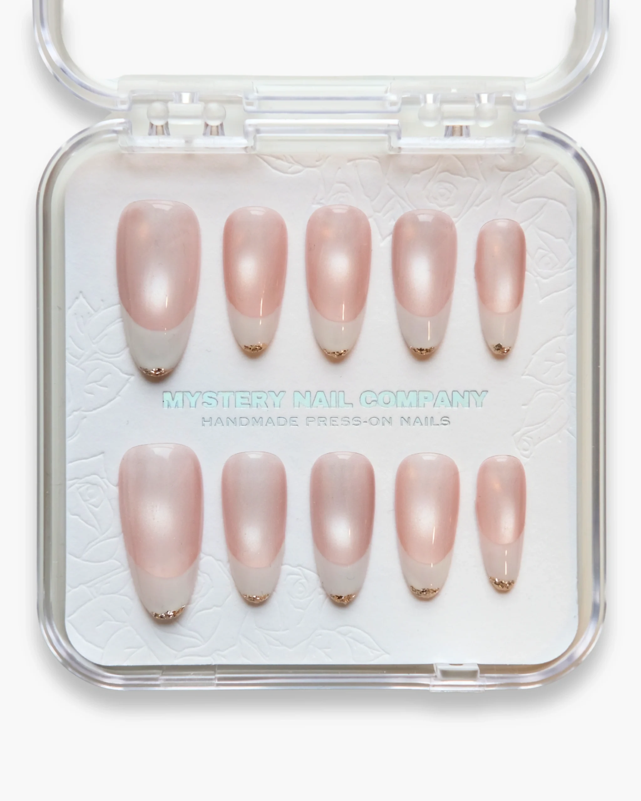 • Features delicate ivory French tips accented with a touch of shimmering gold leaf at the very edge