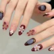 - Handmade press-on nails with deep espresso tones and sculpted 3D petals